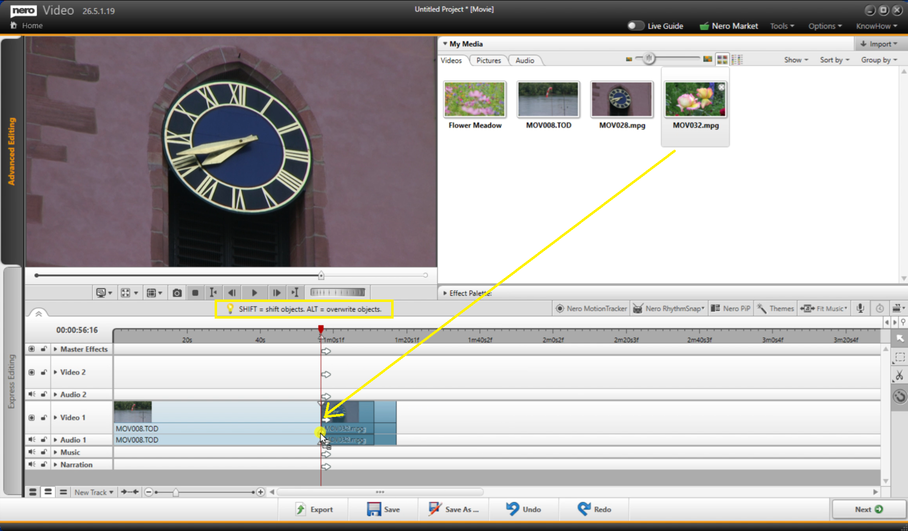 2. Hold down the Shift key on keyboard and drag the new clip onto the timeline.