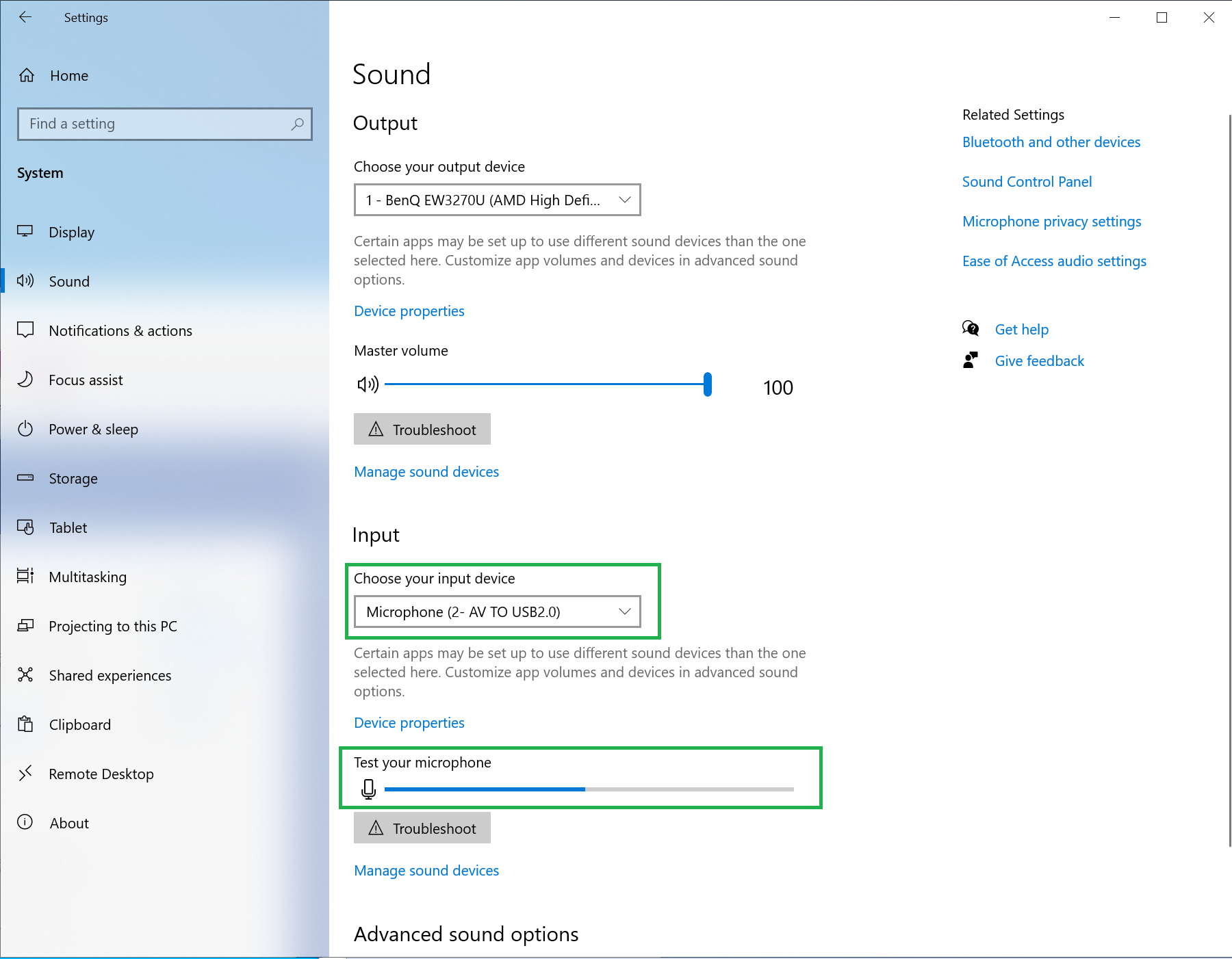 b. Under Input, select "Microphone (2- AV TO USB2.0)".