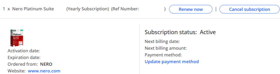 After log in to Nero myAccount, find Cancel Subscription and click on this botton.