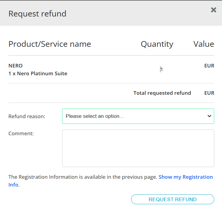 5. Select the refund reason and input the comment, click button of REQUEST REFUND and sent out the request.