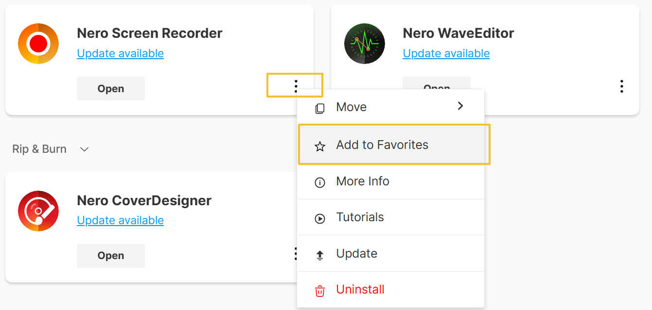 - Retrouvez toutes les applications que vous avez sélectionnées dans l'onglet « Favoris ».