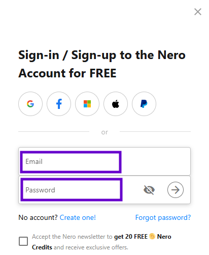 Neroアカウントにログインするには、2つの方法があります。
