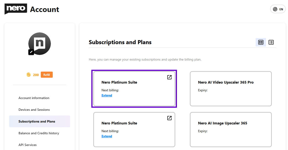 どちらの方法からも、Nero myAccountページにアクセスできます。