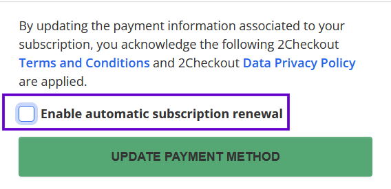 2. Schakel het selectievakje “Automatische verlenging van abonnement inschakelen” uit.