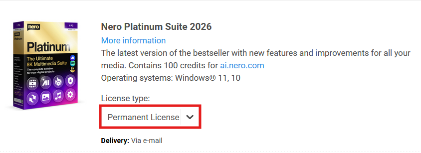 O Nero Platinum Suite está disponível em dois modelos diferentes de licenciamento: