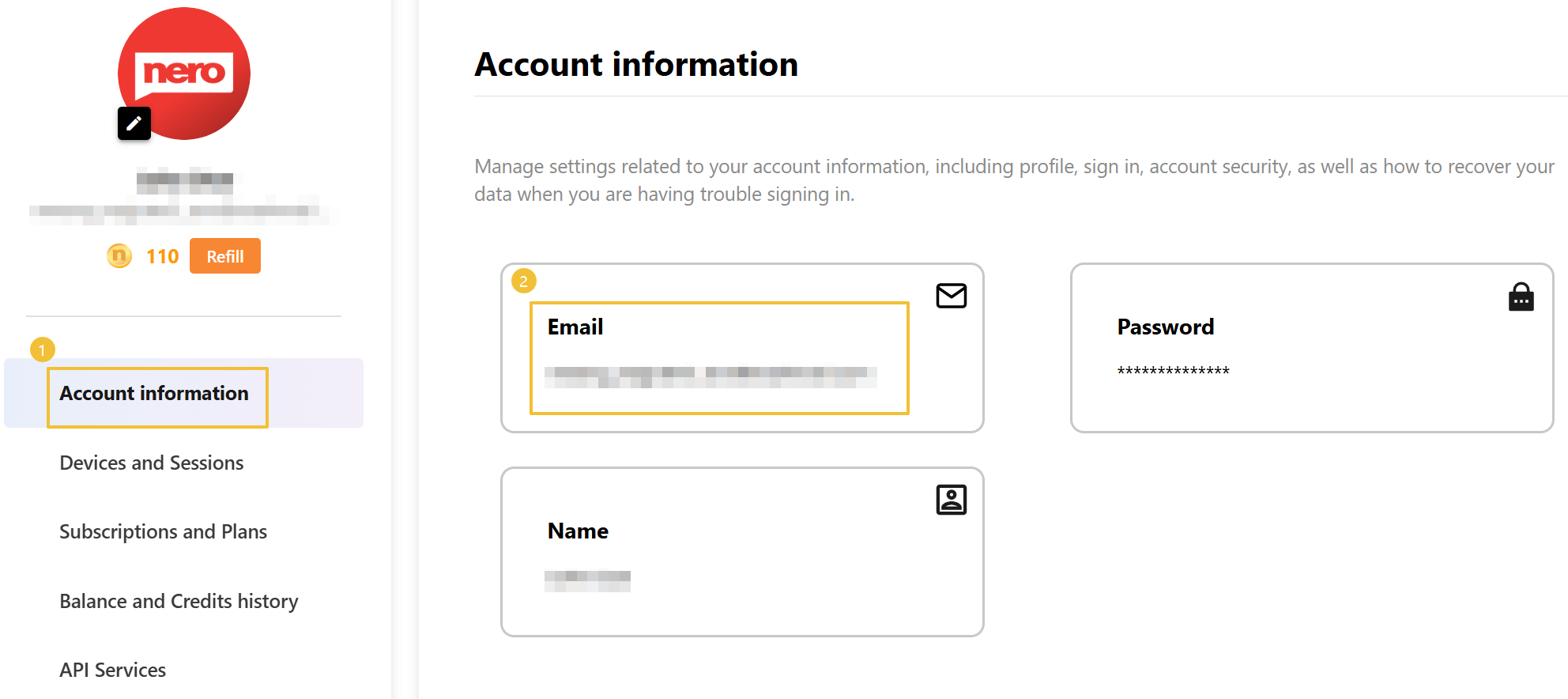4. На веб-странице "Профиль" нажмите "Подписка и планы", чтобы просмотреть все платные продукты Nero, привязанные к вашей учетной записи Nero.